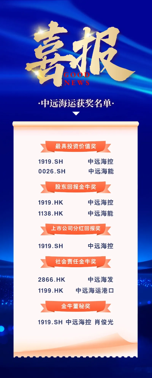 一直以來,中遠海運所屬上市公司始終將回報投資者放在首位,近年來積極響應優化市值管理、增強投資者信心的要求,堅持以“投資者為本”的理念,切實通過現金分紅、回購股份等方式積極回報股東,此次所屬多家公司同步獲得金牛獎認可,印證了中遠海運在價值創造、公司治理、社會責任等多維度取得的扎實成效。